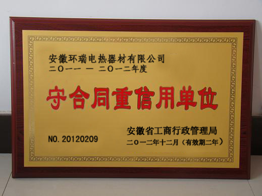 誠信是企業(yè)可持續(xù)發(fā)展的基石。十多年來,安徽環(huán)瑞電熱器材有限公司始終秉承“以人為本,以顧客為中心”的核心價(jià)值觀,恪守誠信經(jīng)營的理念,嚴(yán)格執(zhí)行《合同法》、《公司法》等法律法規(guī),不斷強(qiáng)化合同管理,完善合同管理制度,從根本上保證合同管理和履行的規(guī)范性。同時(shí),大力開展創(chuàng)造“守合同重信用”企業(yè)活動,營造“守合同重信用”的良好氛圍,提高全體職工“守合同重信用”的自覺性和法制觀念,使企業(yè)合同管理不斷走向制度化、規(guī)范化、標(biāo)準(zhǔn)化。2011-2012年公司合同履行率100%。無任何違法、違約、違規(guī)及合同糾紛等不良行為,各合作單位對安徽環(huán)瑞的合同履行情況也都給予了高度評價(jià)。